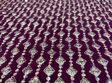 Georgette work sequence fabric" is a luxurious textile adorned with sequins meticulously arranged in intricate patterns. Its lightweight, sheer georgette base drapes gracefully, while the sequins add a touch of glamour and texture. Commonly used in upscale fashion, this fabric is ideal for creating dazzling evening gowns, cocktail dresses, and statement tops. Its versatility extends to accessories like scarves and clutch bags, adding sparkle to any ensemble. Whether for special occasions or high-end everyday wear, georgette work sequence fabric exudes elegance and sophistication.